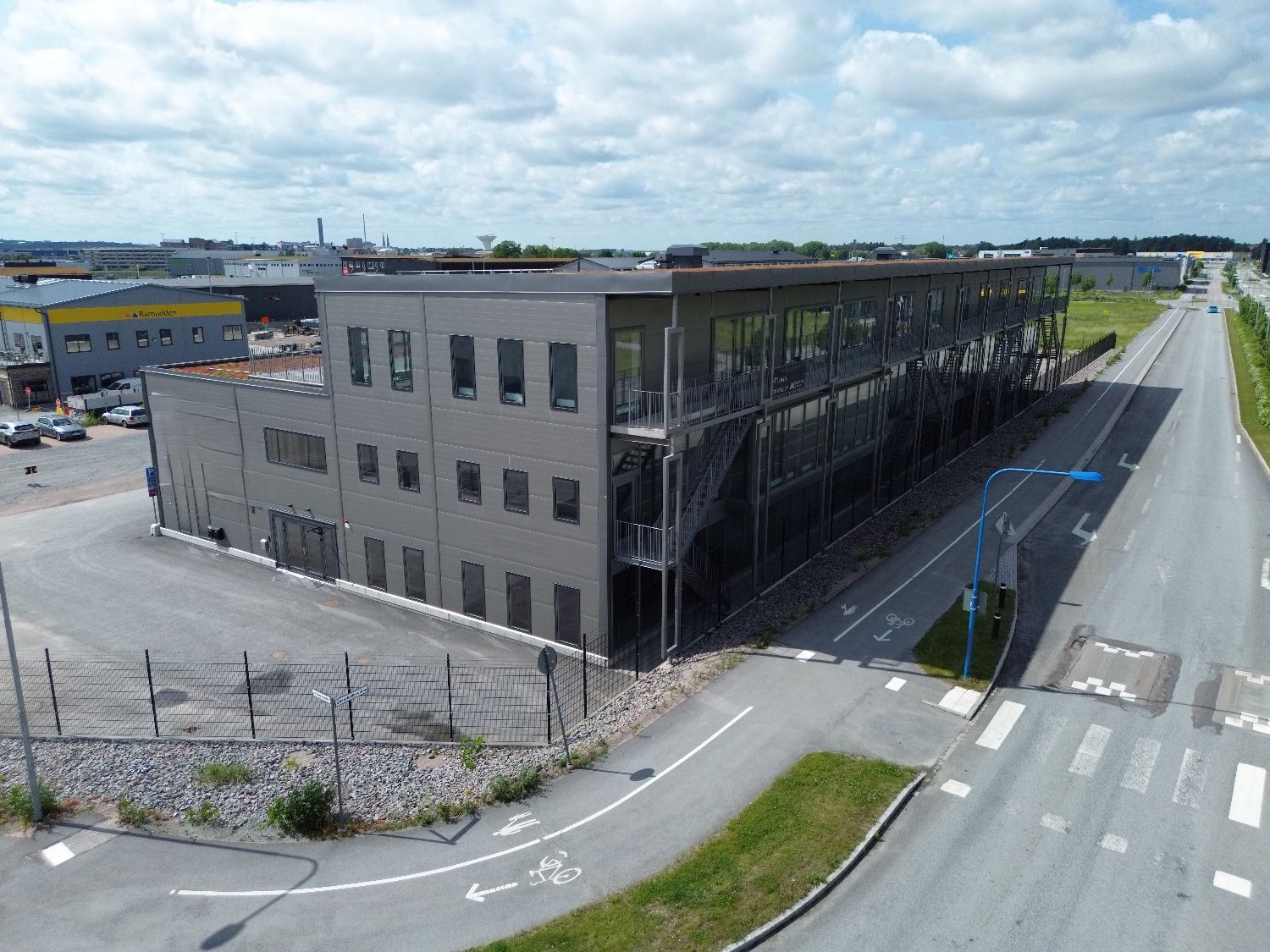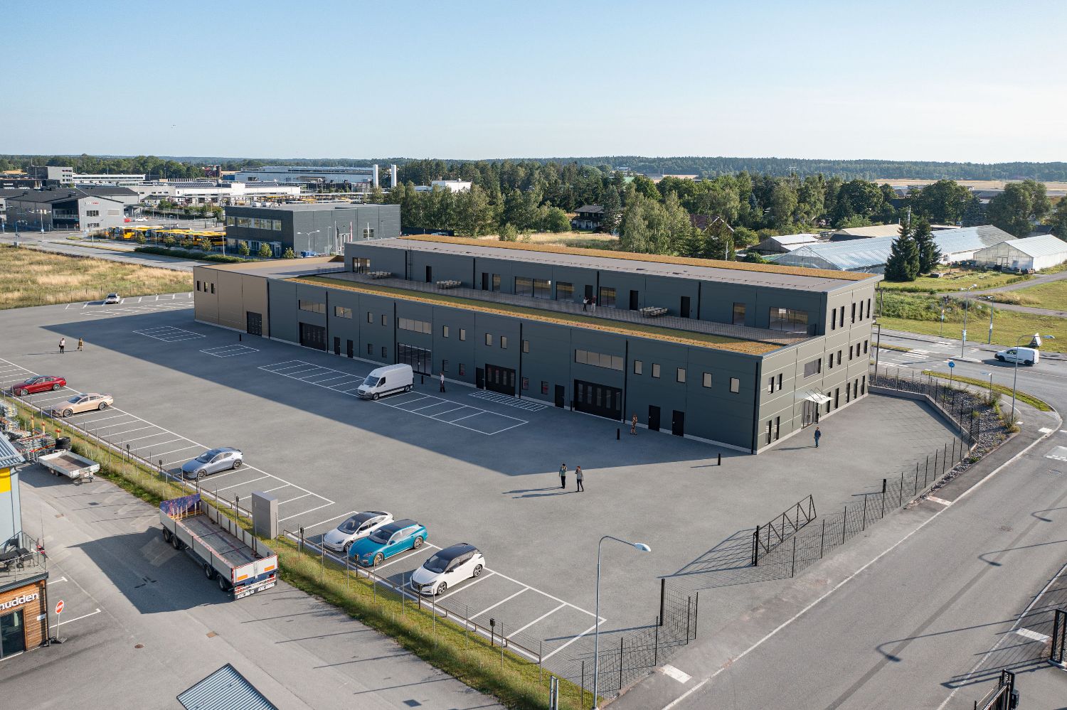Lager/höglager i bottenplan 803 kvm och kontorsyta 1062 kvm i modernt hus nära E4
